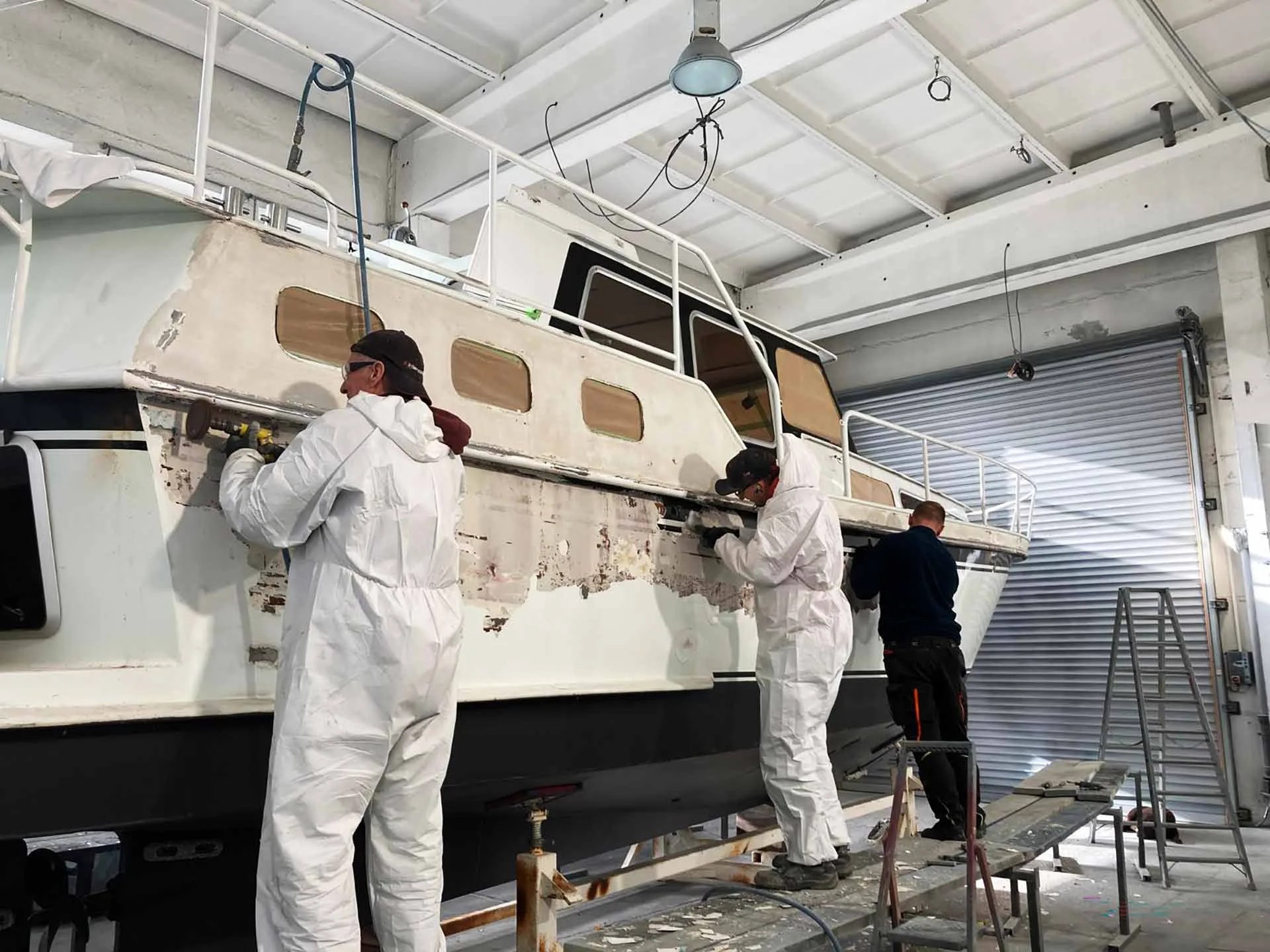 Mathias´ Service reicht von leichtem Spot-Repair bis zu umfangreichen Refits: „Wir hatten da mit allen Bootstypen und Größen zu tun. Und weil wir die komplette Palette aller mit Bootslackierung zusammenhängenden Maßnahmen angeboten haben, wurden die Aufträge immer interessanter und komplexer. Vom fachmännischen Sandstrahlen, dem Lackieren von GfK-Yachten bis hin zu Stahl- und Alubooten. Einfach alles.“, erzählt er. Aber woher hat Mathias das handwerkliche Können und das notwendige Fachwissen?