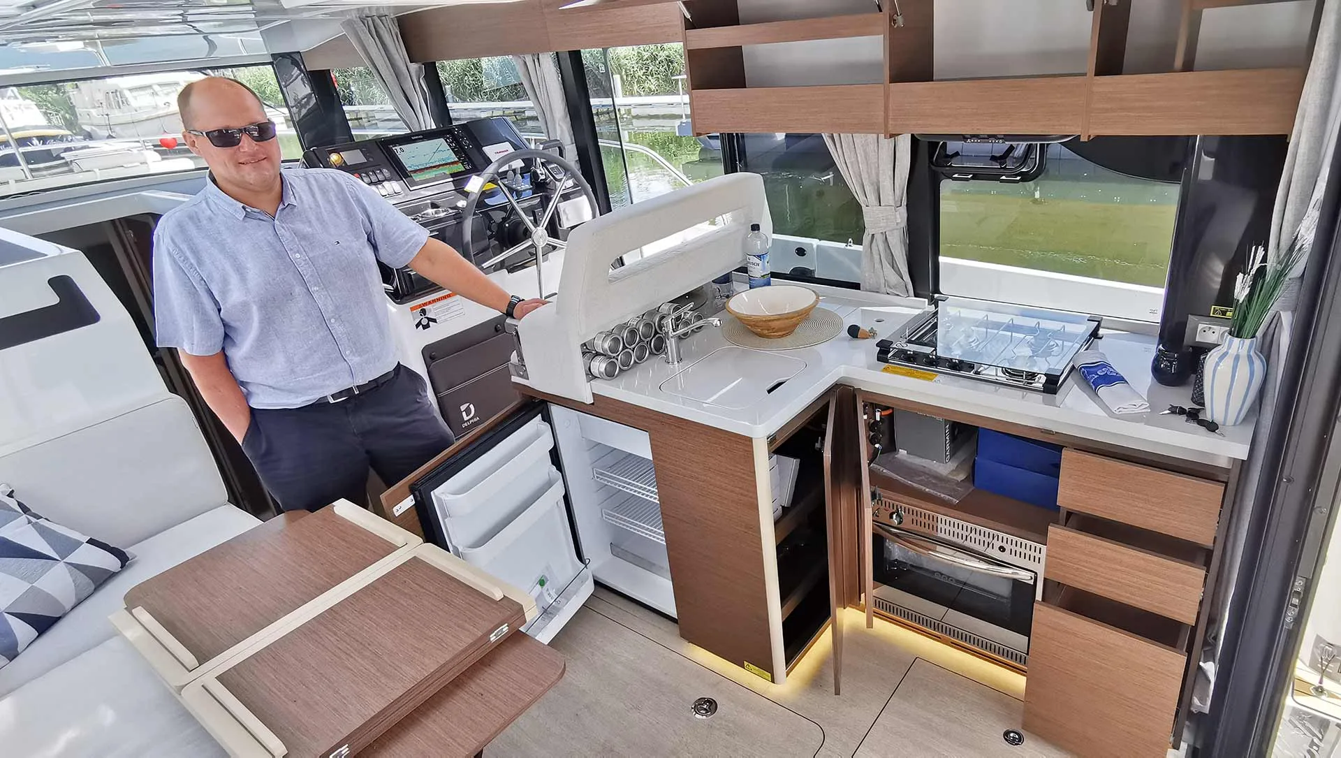 Und direkt nach dem Verkäufer kommt natürlich das Produkt selbst: Die Yacht. DELPHIA ist eine Art Außenseiter auf dem Motorboot-Markt. Von Anfang an hat man konsequent auf den Bau von ökonomisch vertretbaren Verdränger-Yachten gesetzt, hatte eine Nutzung vorrangig in Binnengewässern im Sinn und ganz klar die Familie im Fokus, was die Eigner angeht. Kein prolliges Posing, kein Angeben, kein Luxus-Geprotze. Praktikabilität, clevere Lösungen und ganz viel Raum für Ihren Urlaub stehen im Vordergrund. Im Ergebnis sind die drei Yachten, die DELPHIA im Angebot hat, super praktische Familien-Boote, die „einfach total Sinn machen“, wie uns einer unserer Kunden begeistert sagt. Alles an Bord hat seinen Sinn, hat seinen Platz, hat seine Bestimmung.