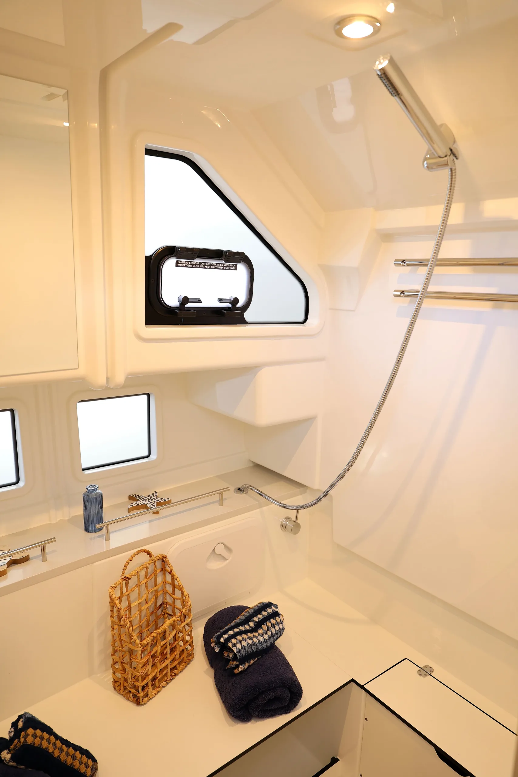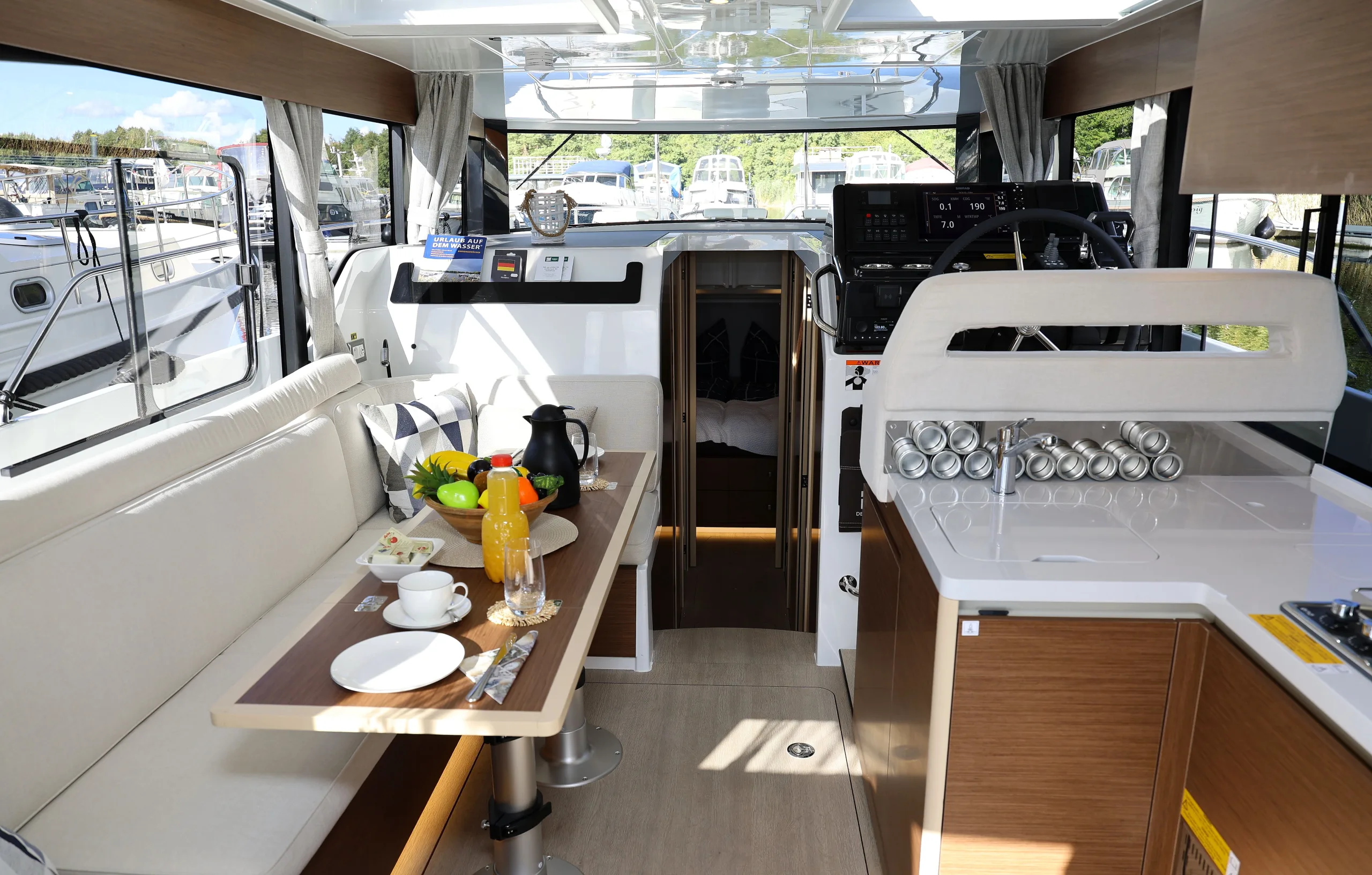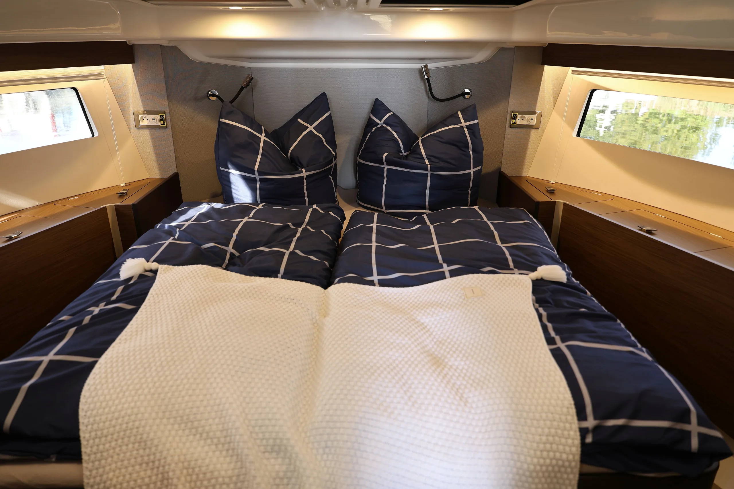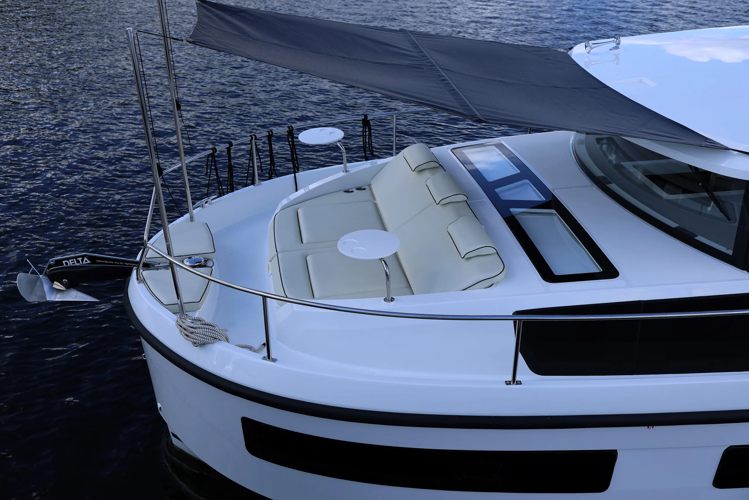 Delphia Yachten verbinden Komfort und Funktion in perfekter Harmonie. Lichtdurchflutete Wohnbereiche, durchdachte Raumkonzepte und hochwertige Ausstattungsdetails schaffen eine Atmosphäre, in der Sie sich sofort wohlfühlen – ob bei kurzen Ausflügen oder längeren Reisen. - Design: