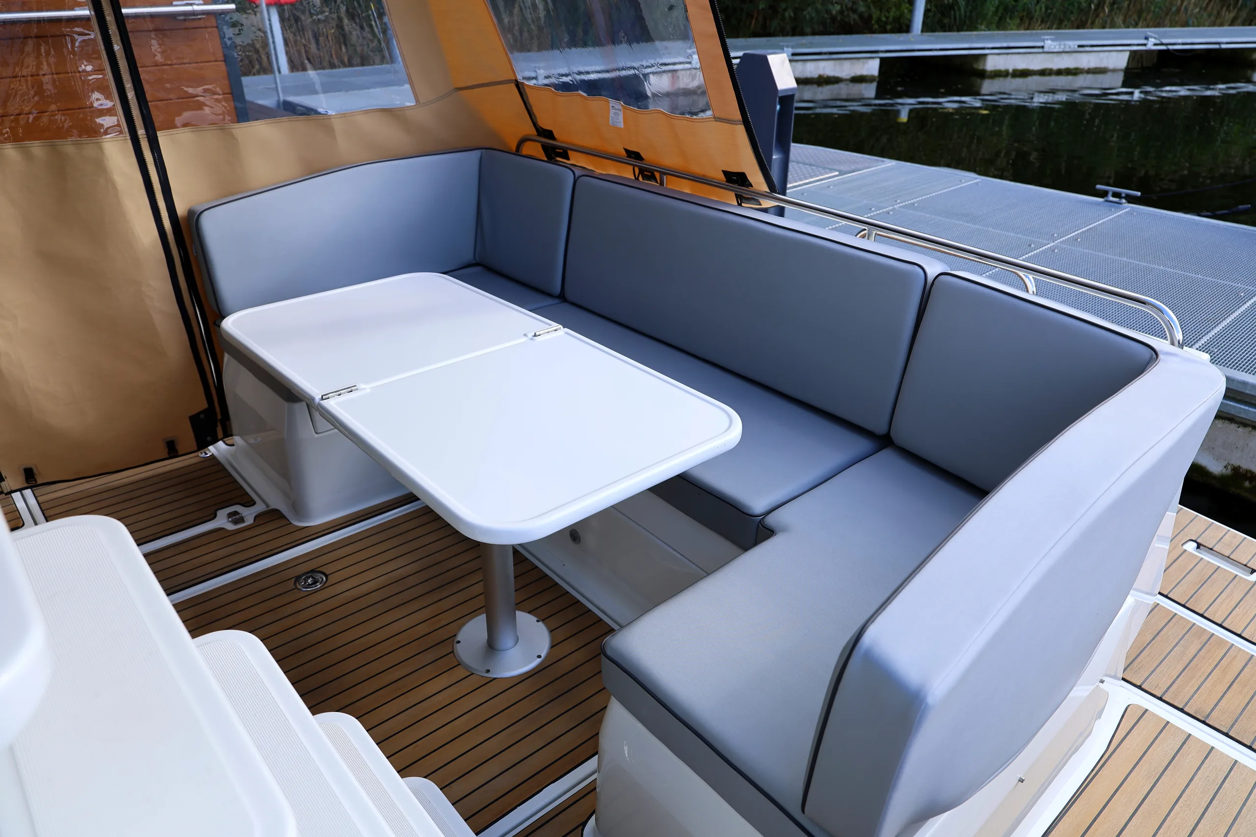 Klare Linien, große Fensterflächen und natürliche Materialien prägen das elegante Erscheinungsbild jeder Delphia. Das Design vereint moderne Ästhetik mit intelligentem Raumgefühl – für ein harmonisches, zeitloses Erlebnis auf dem Wasser.