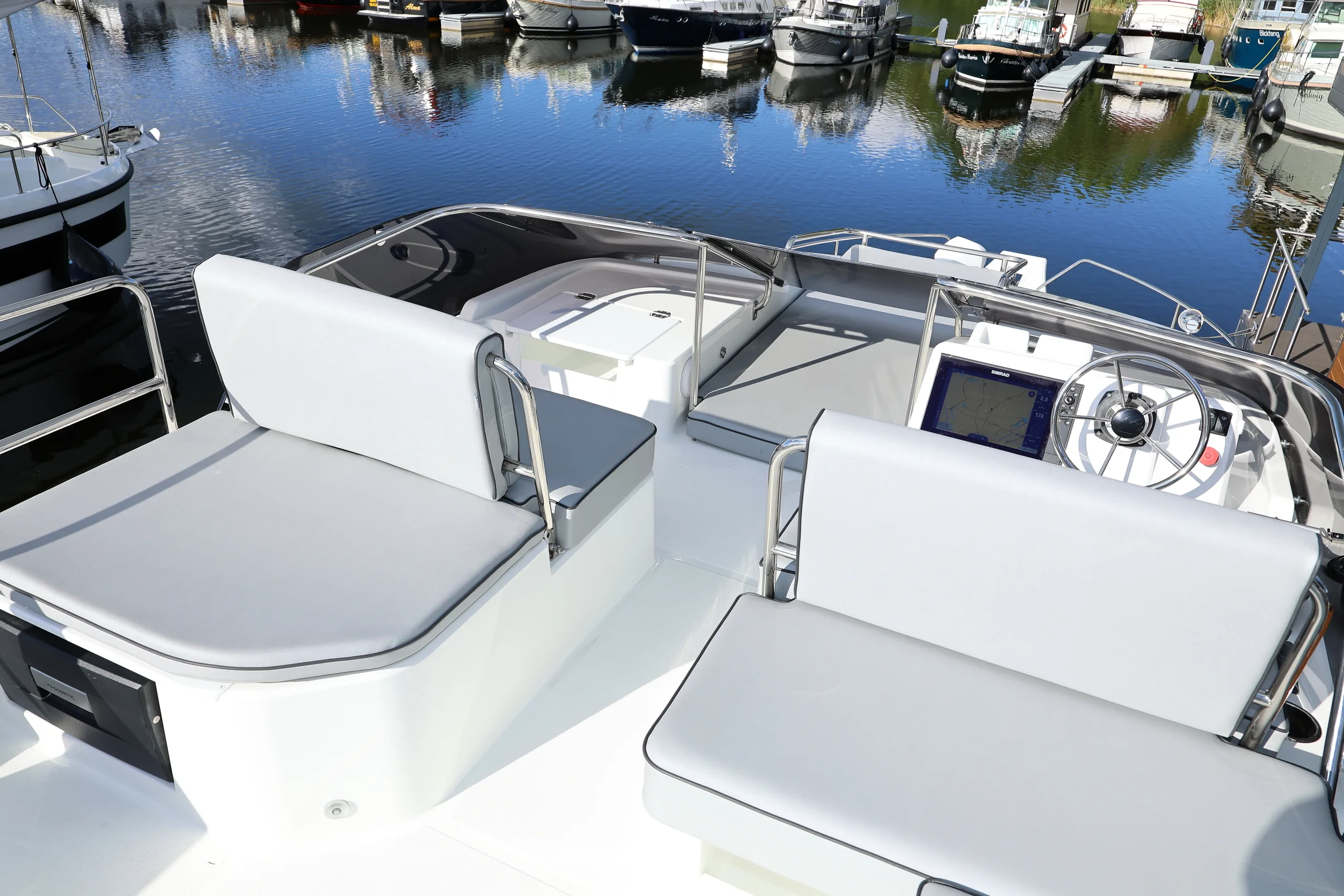 Delphia Yachten verbinden Komfort und Funktion in perfekter Harmonie. Lichtdurchflutete Wohnbereiche, durchdachte Raumkonzepte und hochwertige Ausstattungsdetails schaffen eine Atmosphäre, in der Sie sich sofort wohlfühlen – ob bei kurzen Ausflügen oder längeren Reisen. - Design:
