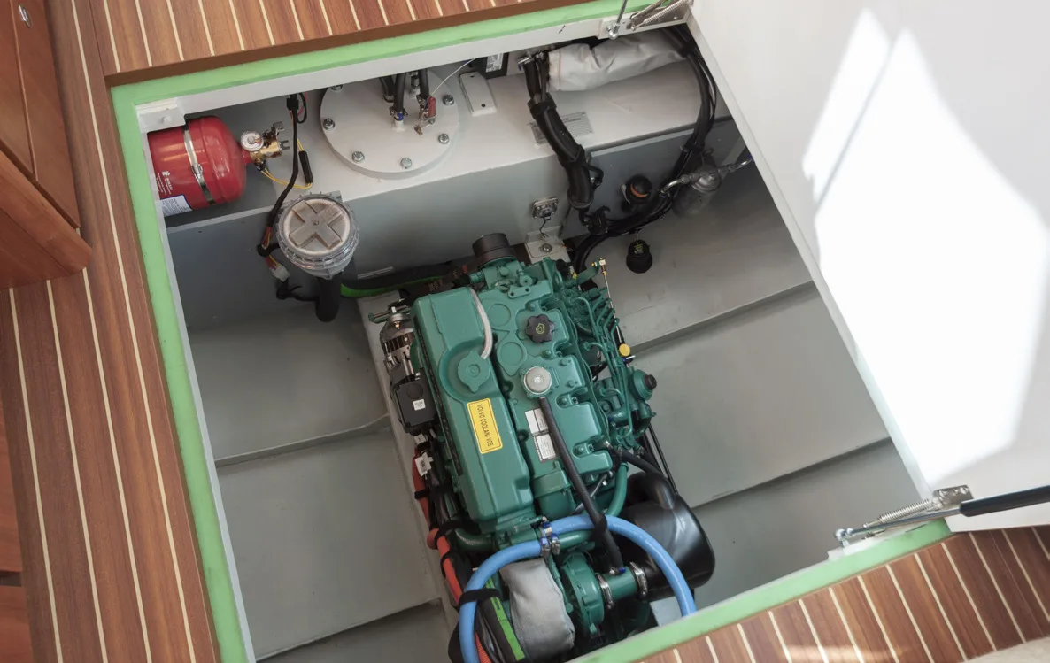 Motor: 1x 4 Zyl. Volvo Penta Diesel, Typ D2-75 ZF 25-H / 2,8 : 1 1x 55 kW (75 PS), 3000 rpm